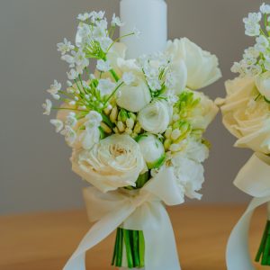 Set lumânări pentru cununia religioasă, cu Asparagus și Trandafiri Cappuccino