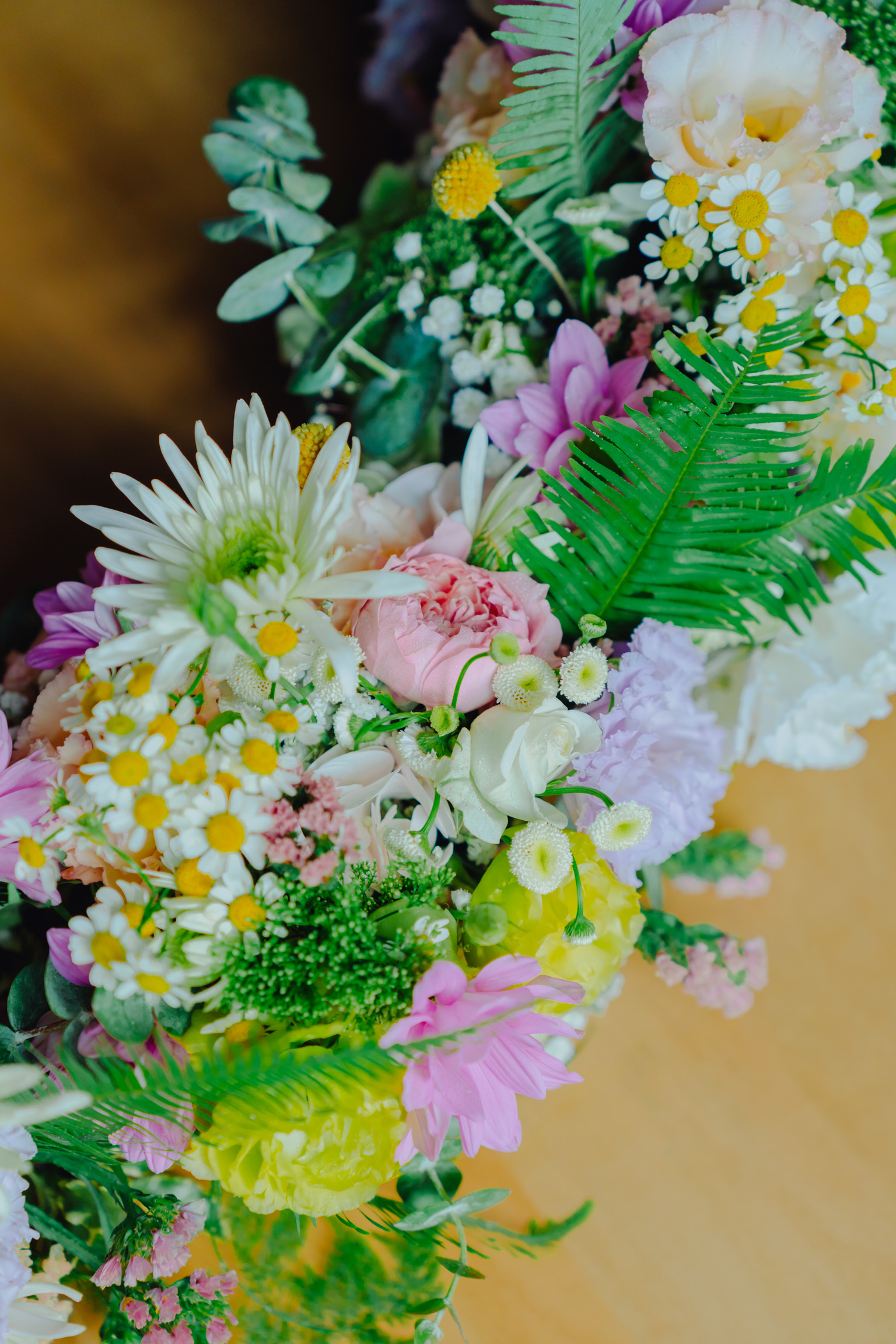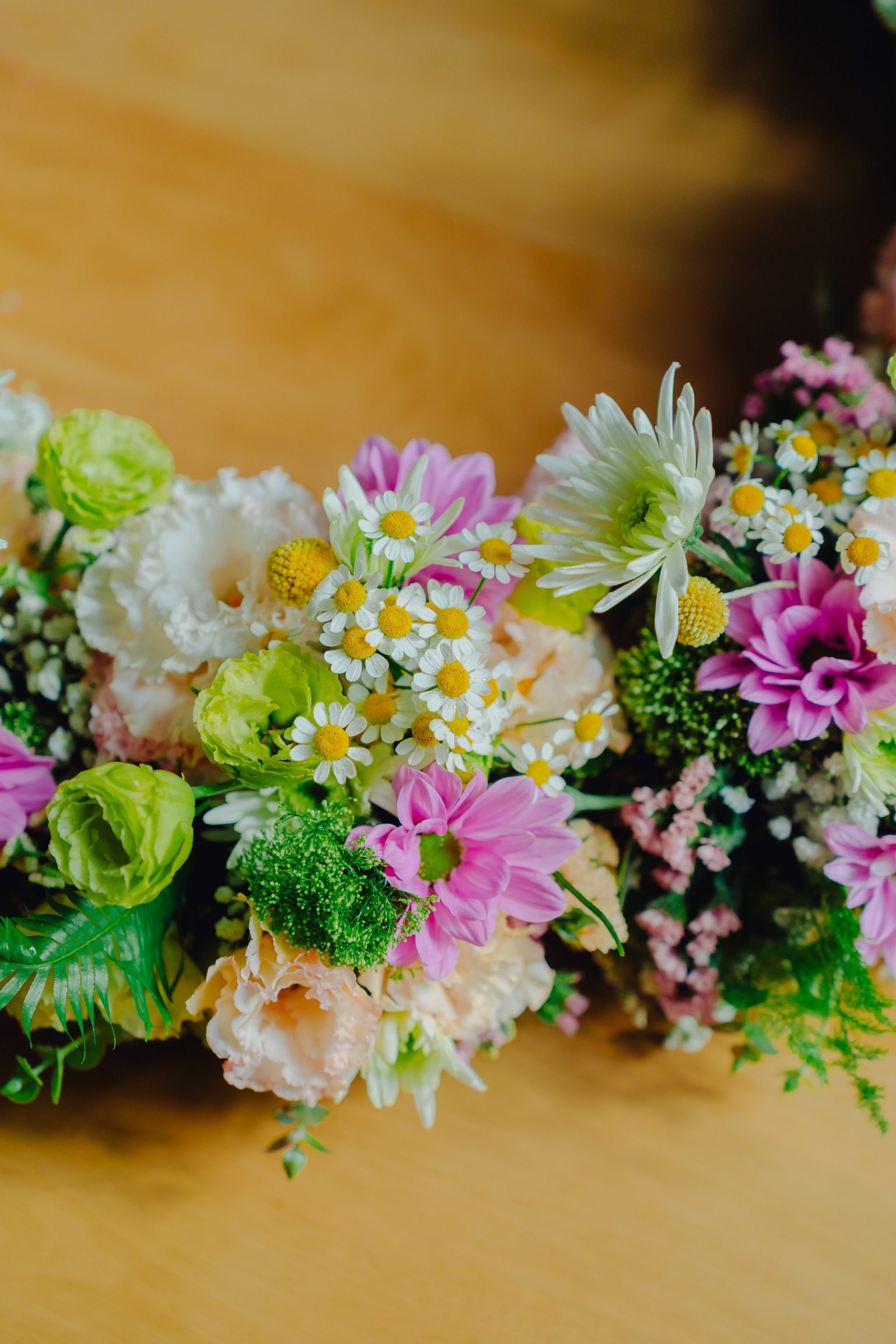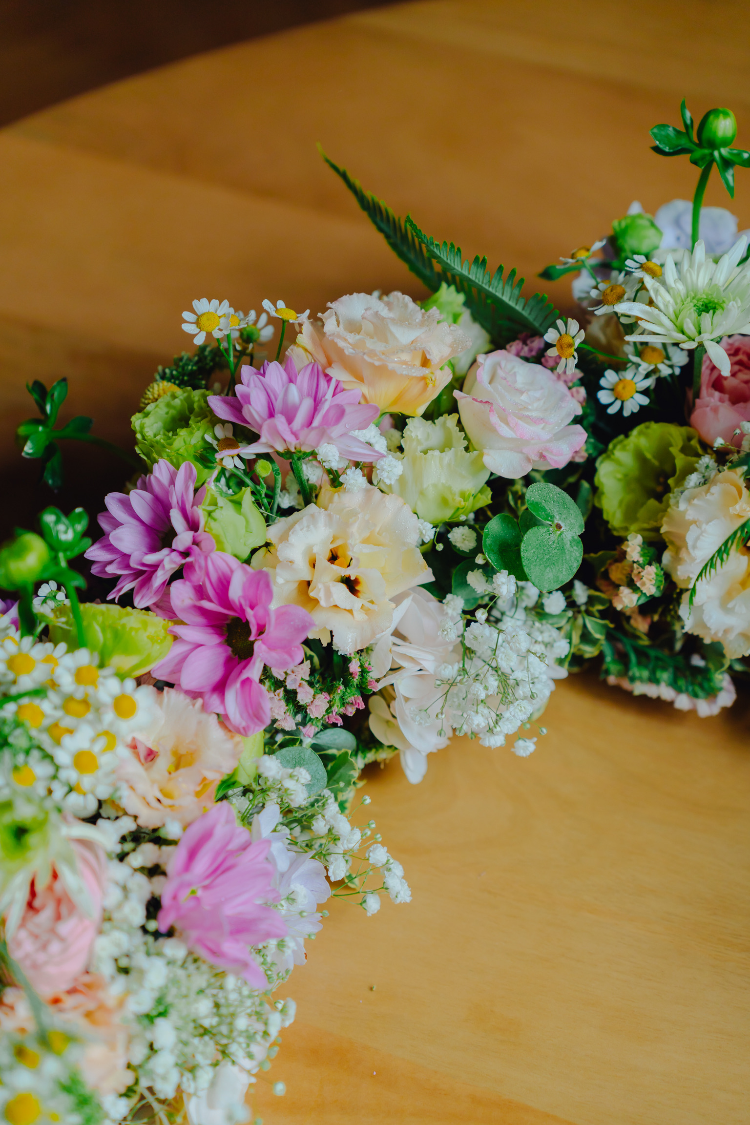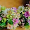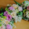 Aranjamentul din imagini are un aspect natural, „de câmp” și a fost alcătuit din următoarele sortimente de flori: dalii, bujori, gerbera, gypsophila, lisianthus, panicum etc.
