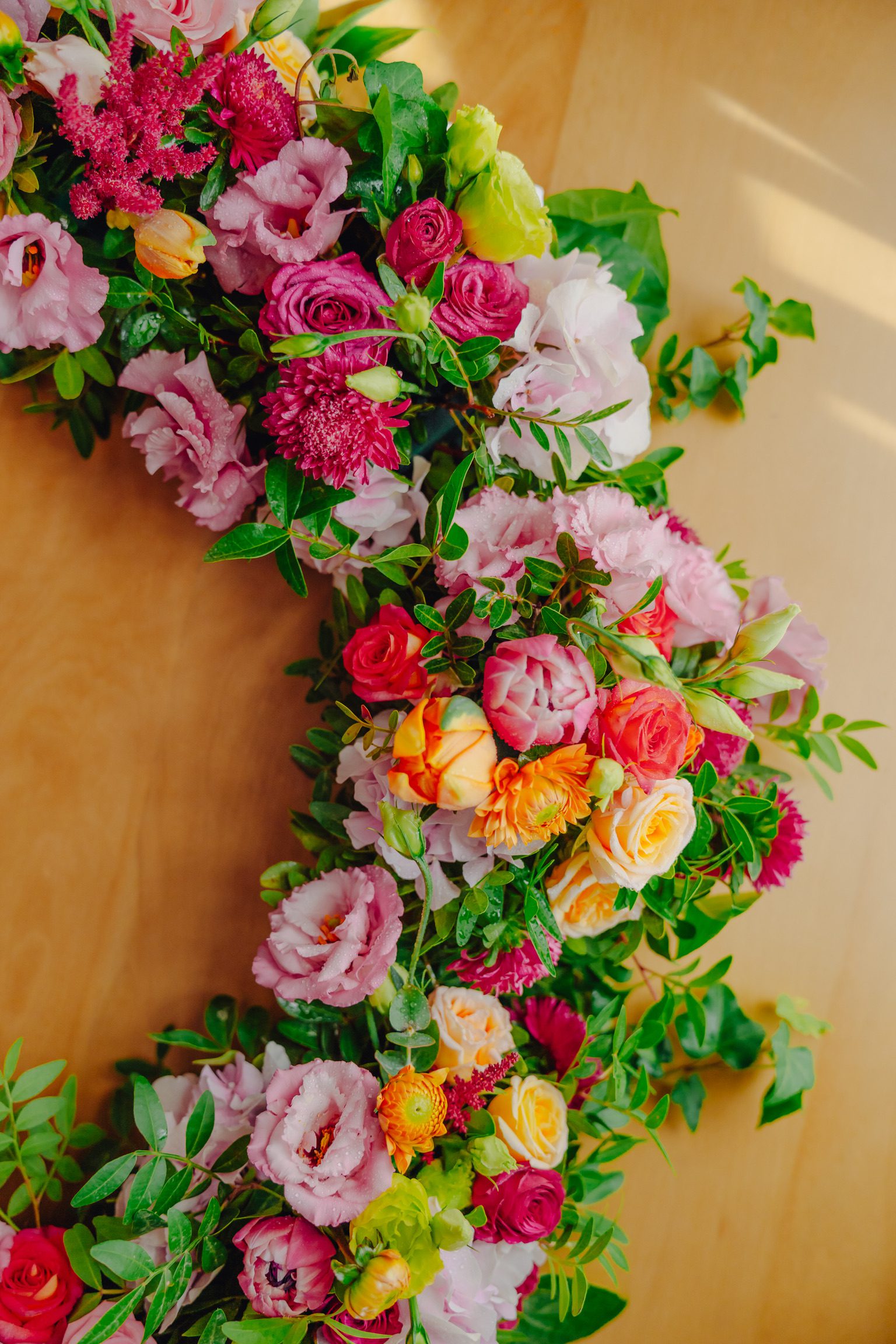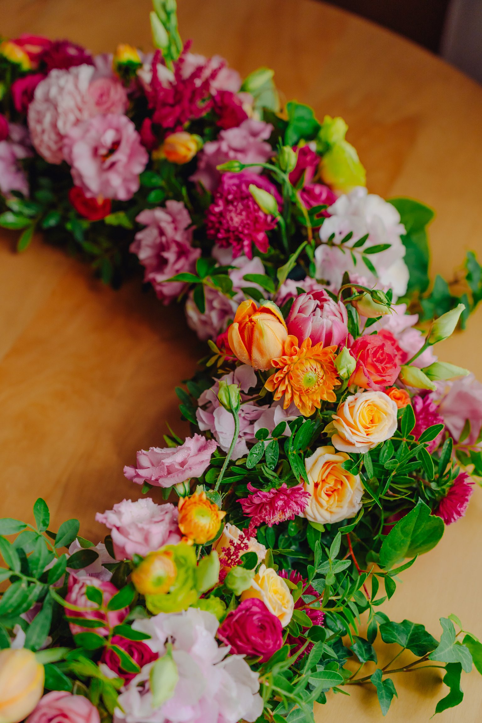 Ghirlanda circulară se atașează pe marginea cristelniței, este structurată pe o bază din burete floral hidratat, astfel că prospețimea florilor va persista și a doua zi după eveniment. Poate fi cu ușurință preluată de către părinți și refolosită ca element decorativ la momentul îmbăierii de acasă a bebelușului. Volumul aranjamentului floral poate fi ajustat în funcție de bugetul ce se dorește a fi alocat.