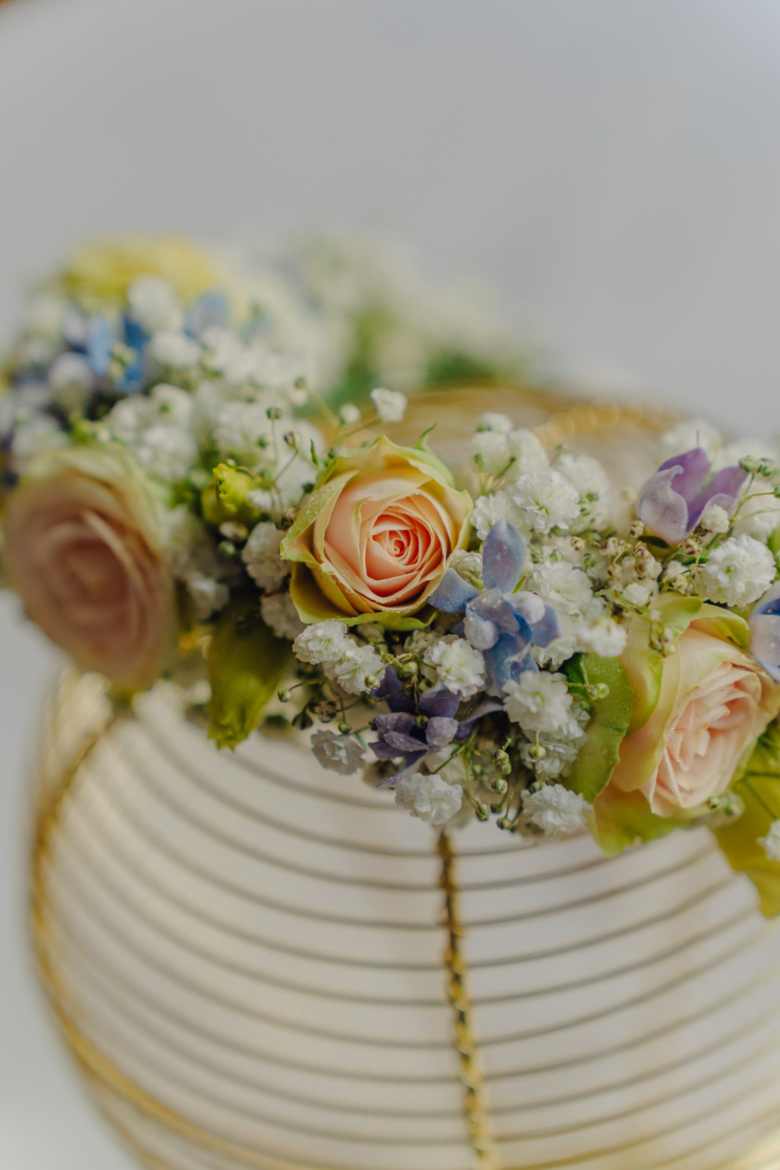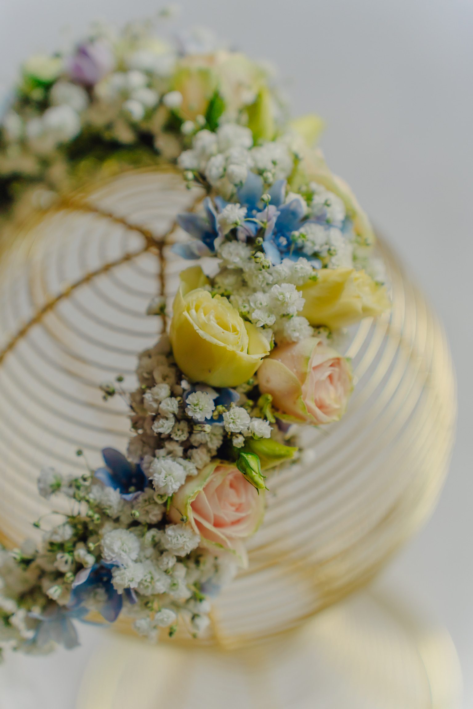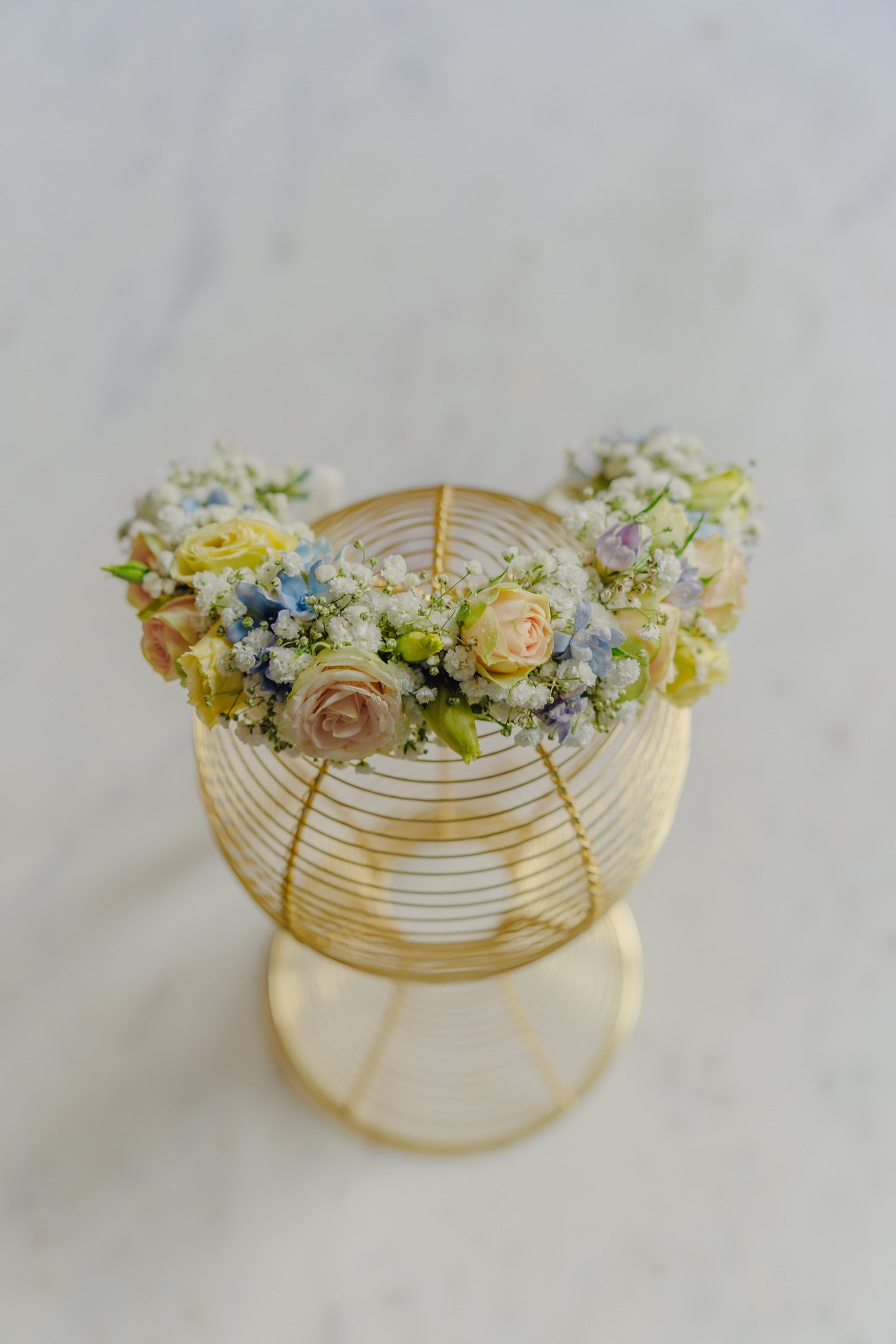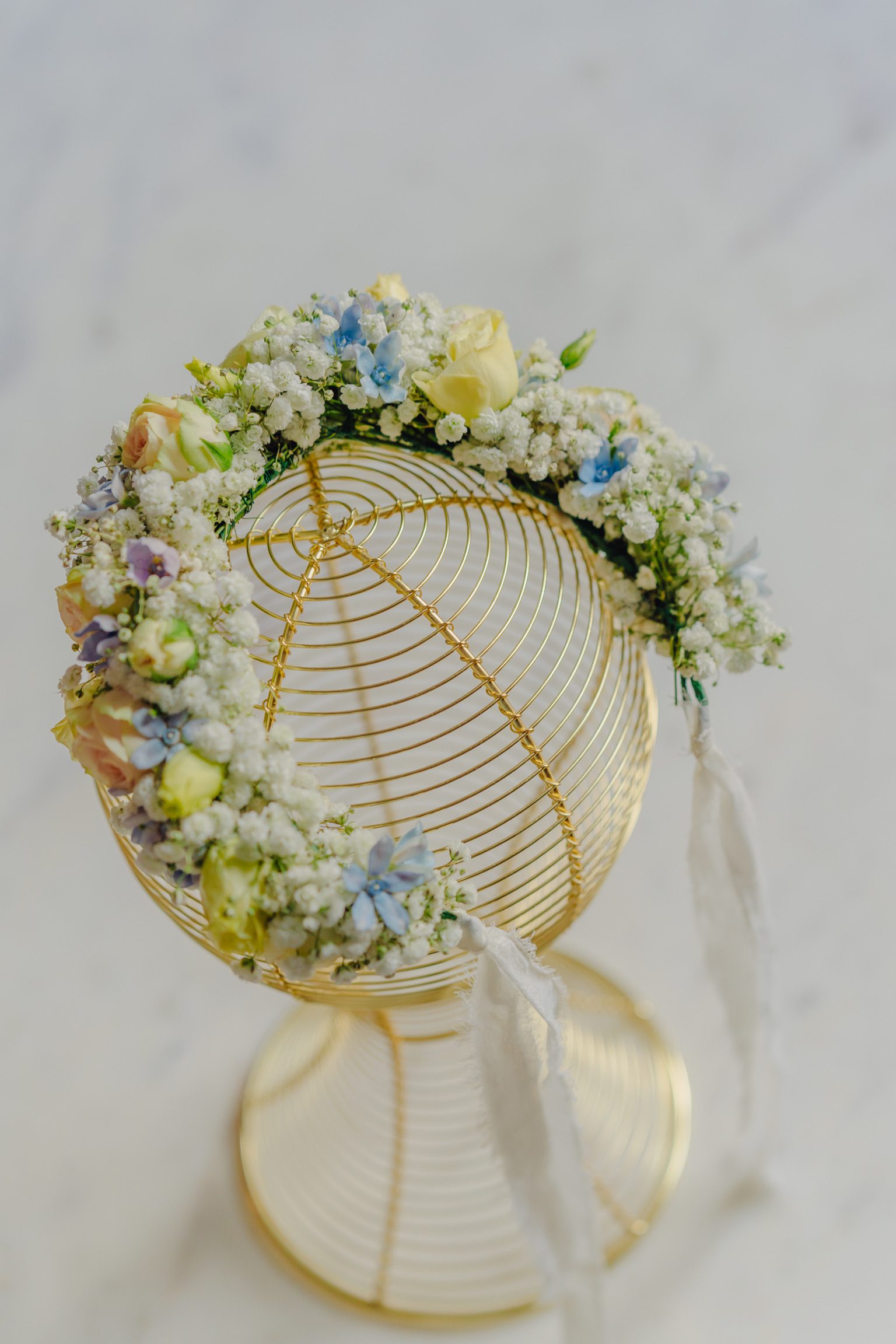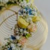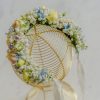 Coroniță în nuanțe de bleu, peach și galben pal