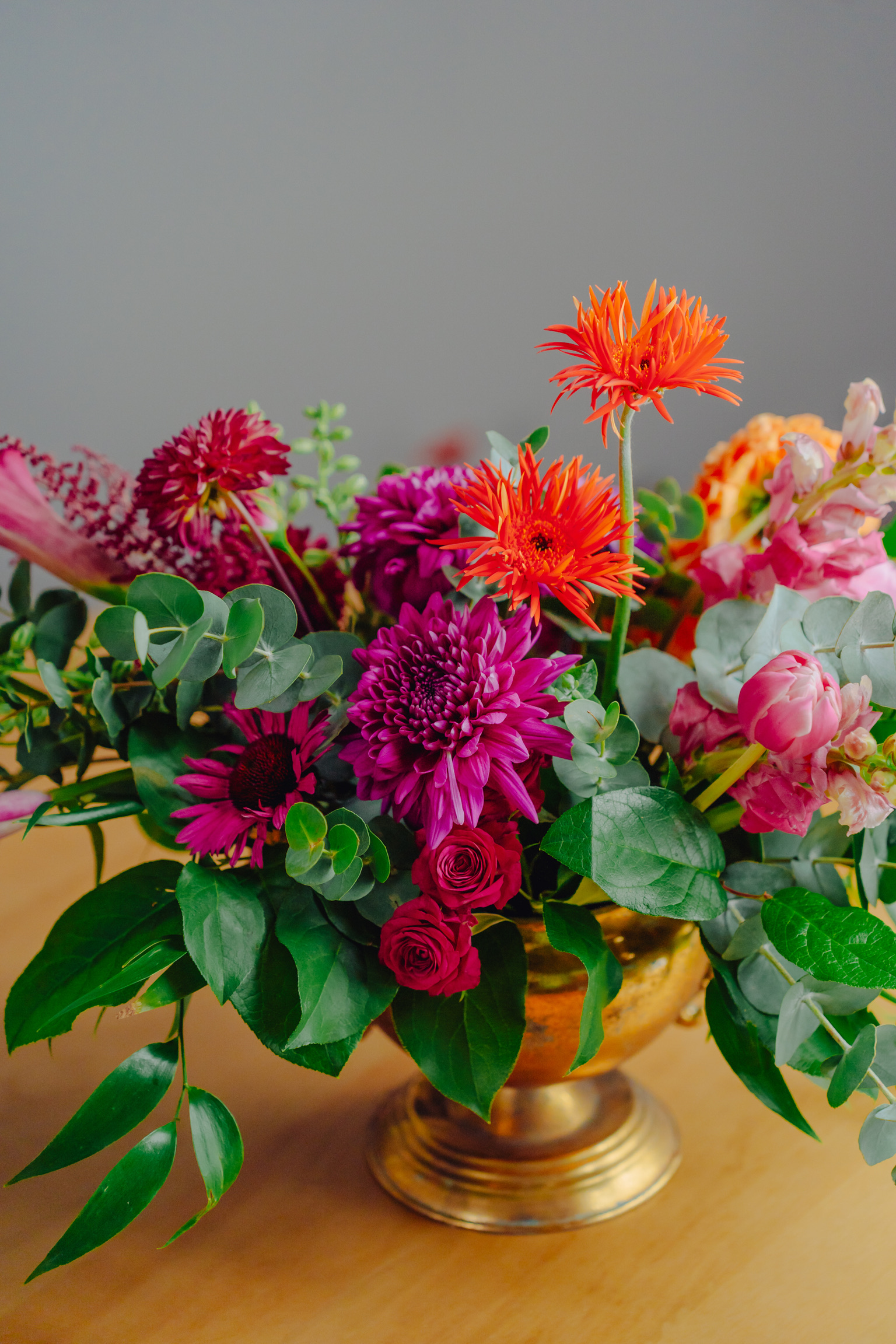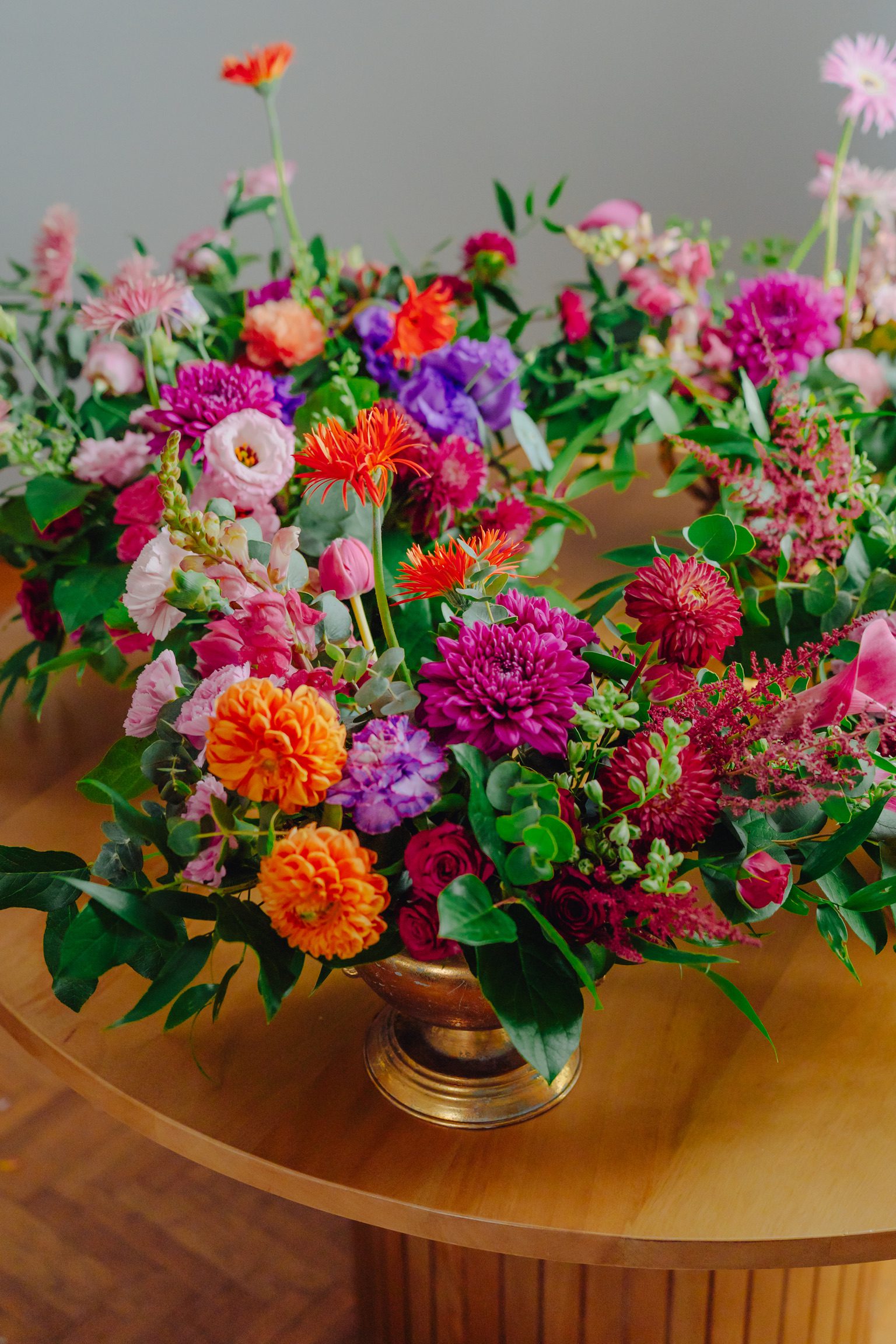 Aranjamentele florale de tip centerpiece sunt preferatele noastre, fie că vorbim despre botez, nuntă, aniversare, eveniment corporate sau cină festivă. Realizăm aranjamente florale gardening, în diferite tipuri de suporturi: vase din sticlă, ceramică, pocaluri vintage, mix de văzuțe de diferite tipuri și dimensiuni, cutii din catifea, suporturi înalte, precum sfeșnicele aurii de 85 cm înălțime, suporturi rectangulare sau circulare. Avem o recuzită variată și ne place să personalizăm fiecare poveste în parte.