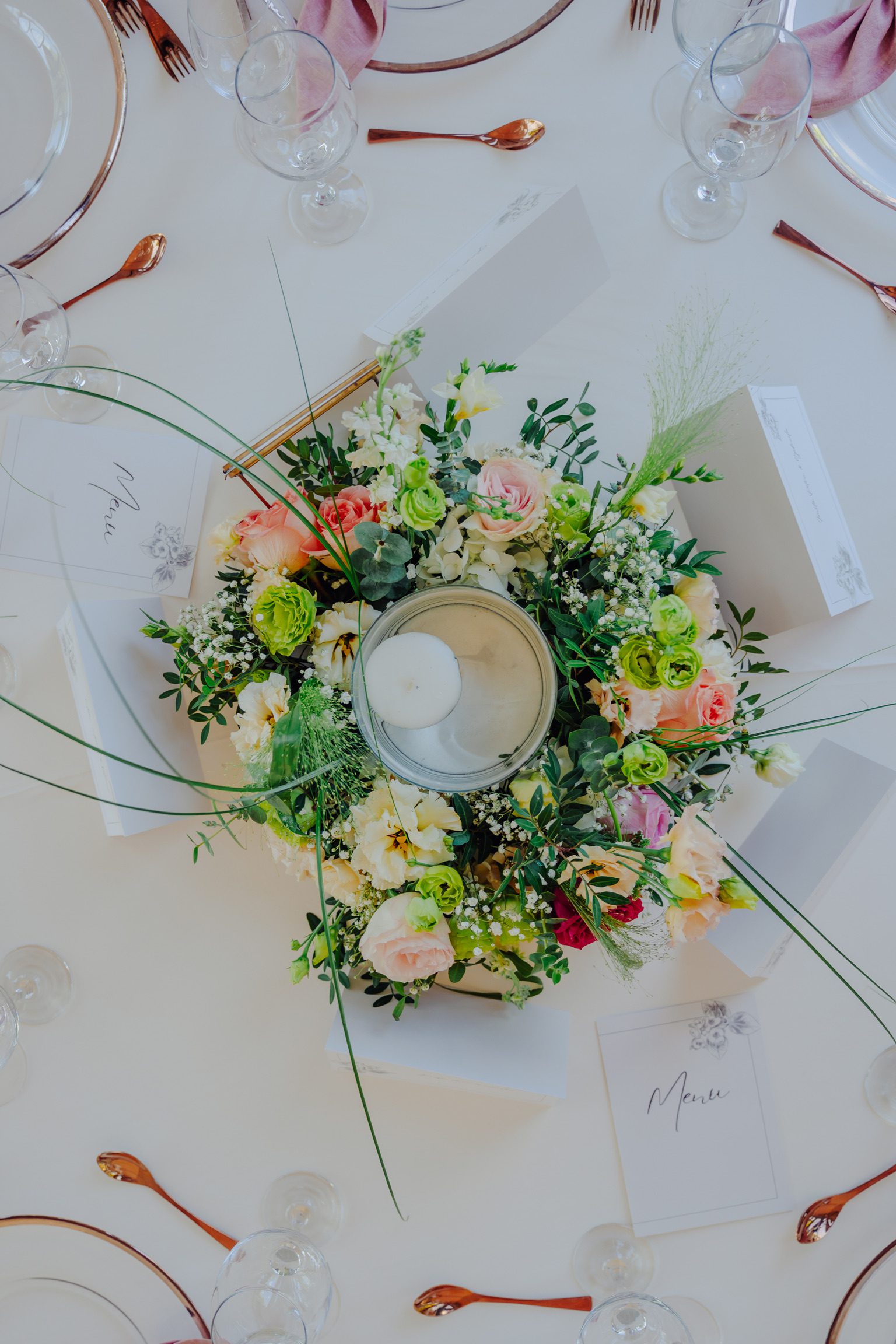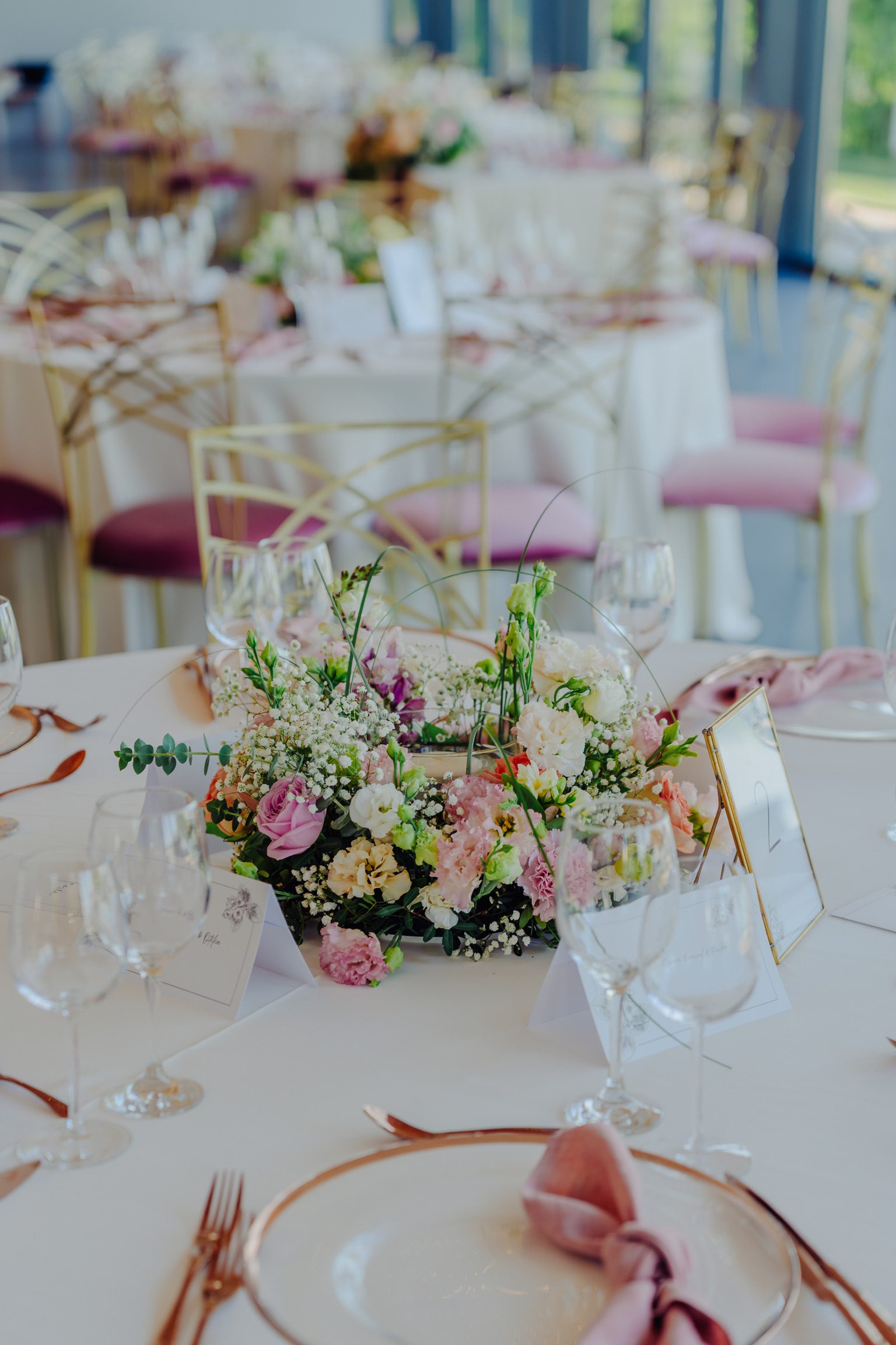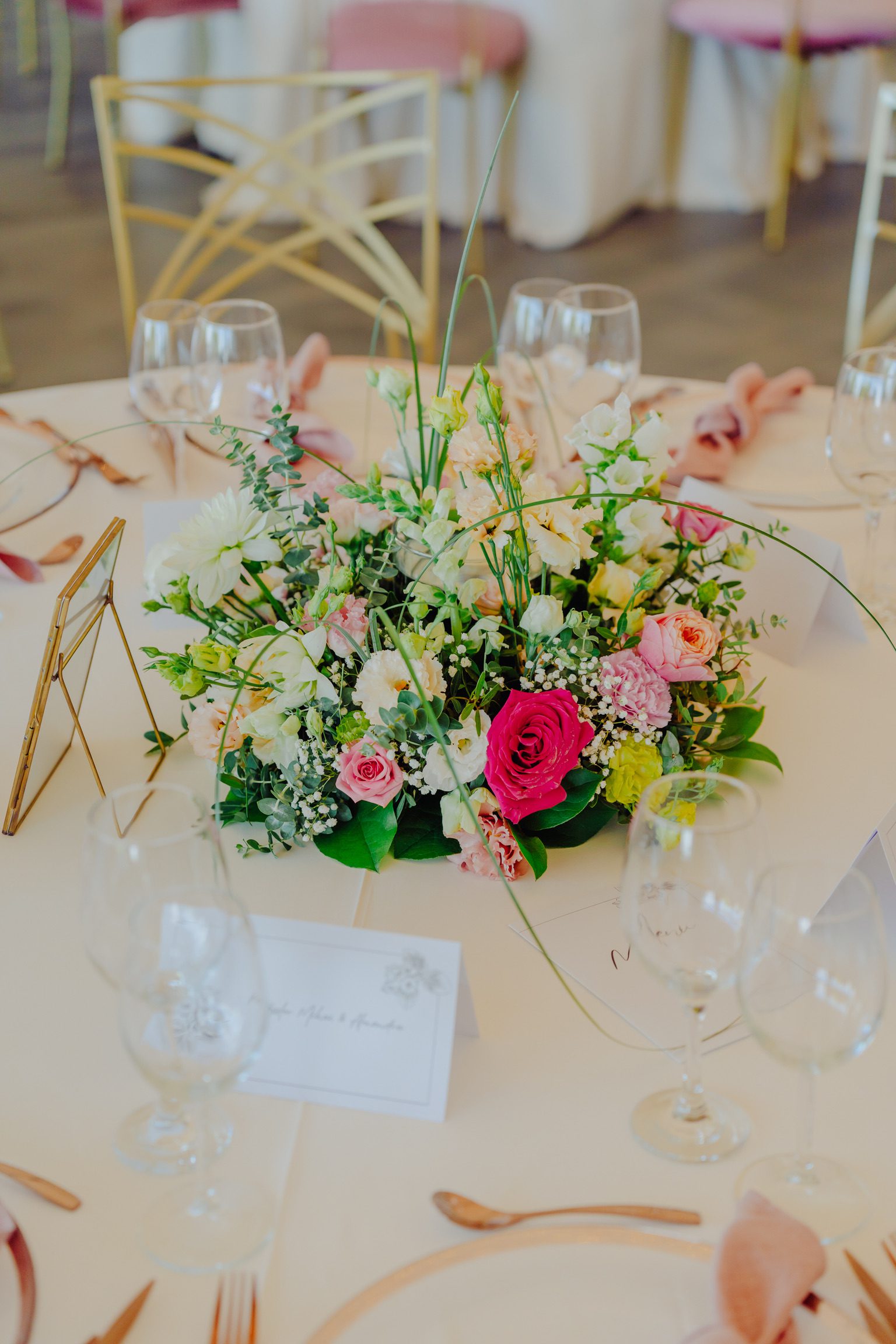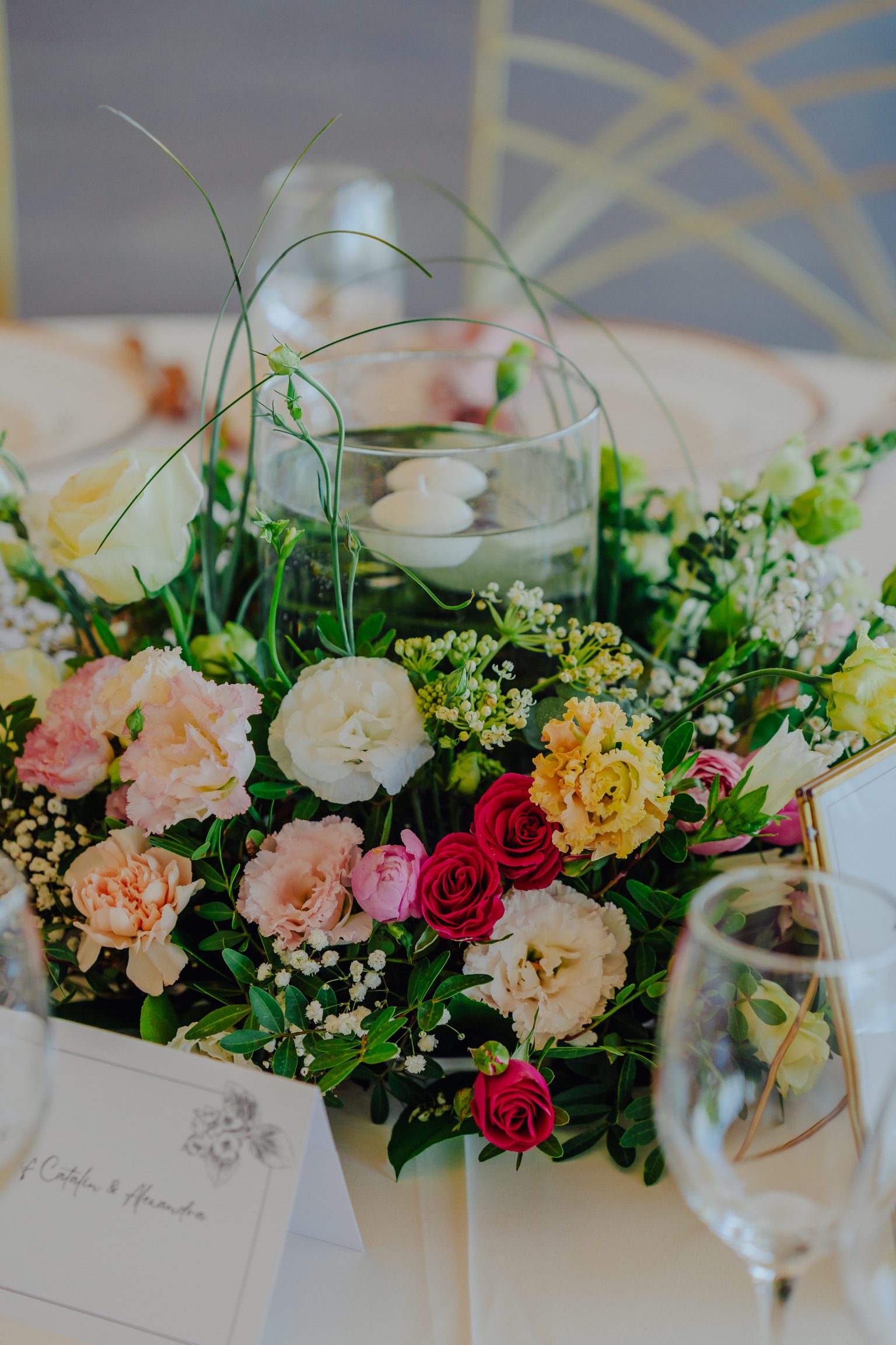 Aranjamentele florale de tip centerpiece sunt preferatele noastre, fie că vorbim despre botez, nuntă, aniversare, eveniment corporate sau cină festivă. Realizăm aranjamente florale gardening, în diferite tipuri de suporturi: vase din sticlă, ceramică, pocaluri vintage, mix de văzuțe de diferite tipuri și dimensiuni, cutii din catifea, suporturi înalte, precum sfeșnicele aurii de 85 cm înălțime, suporturi rectangulare sau circulare. Avem o recuzită variată și ne place să personalizăm fiecare poveste în parte.