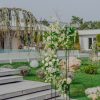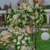 Piedestal cu aranjamente florale în cromatica alb – verde