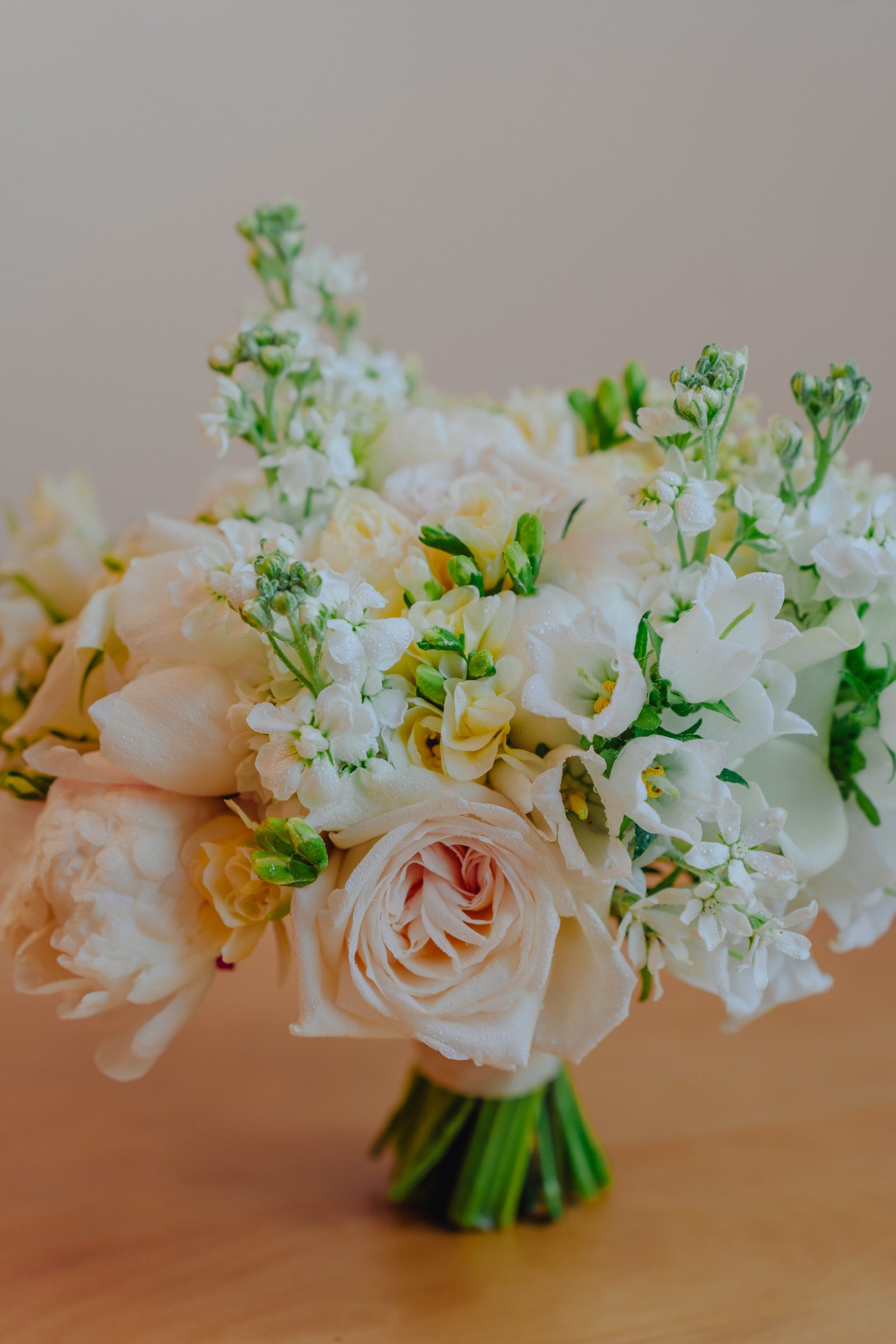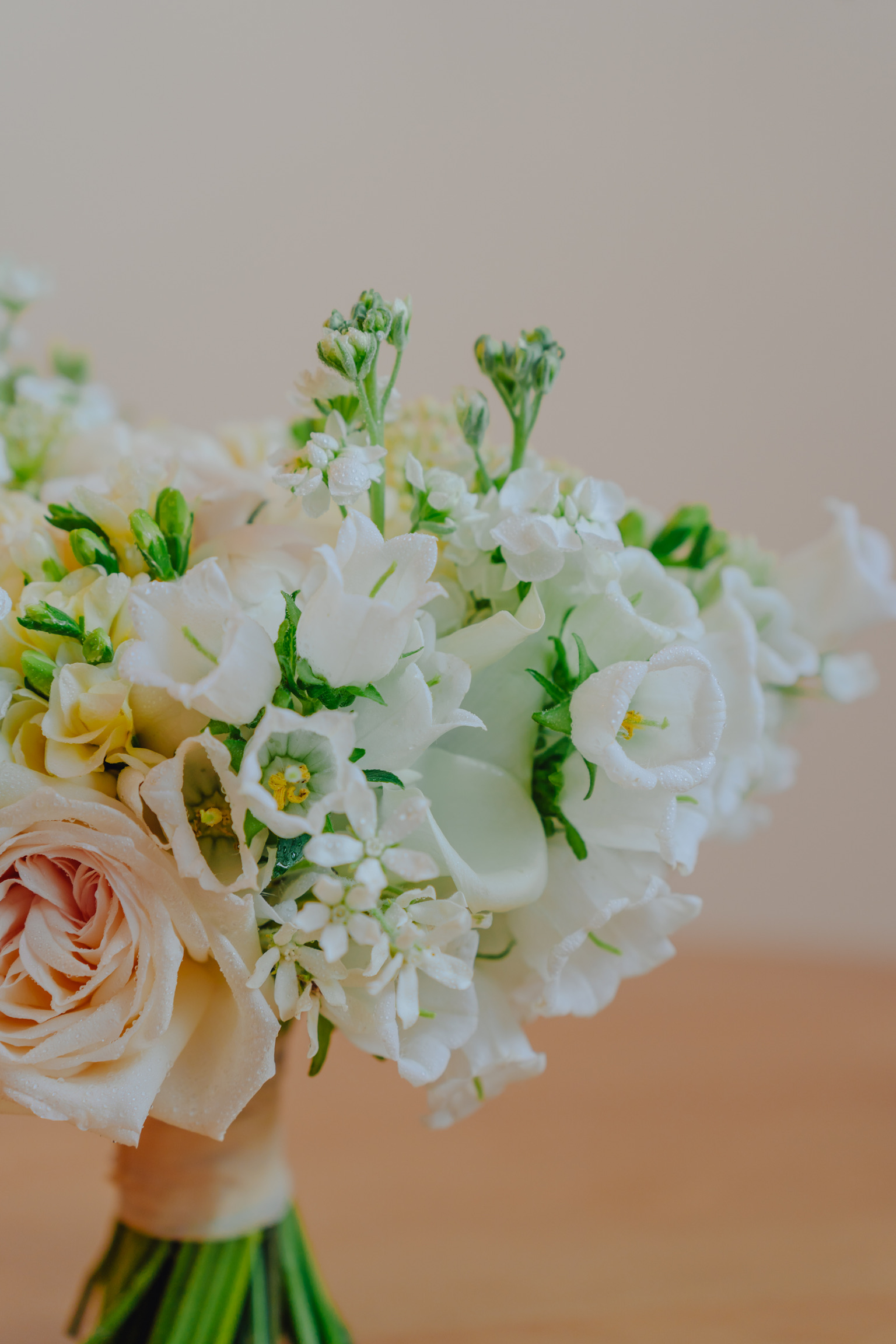 Buchet delicat de mireasă, în nuanțe de alb-ivory
