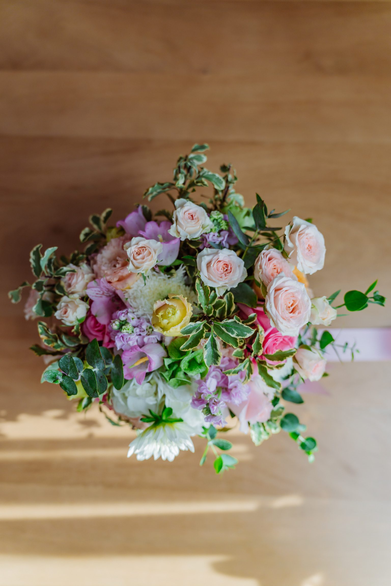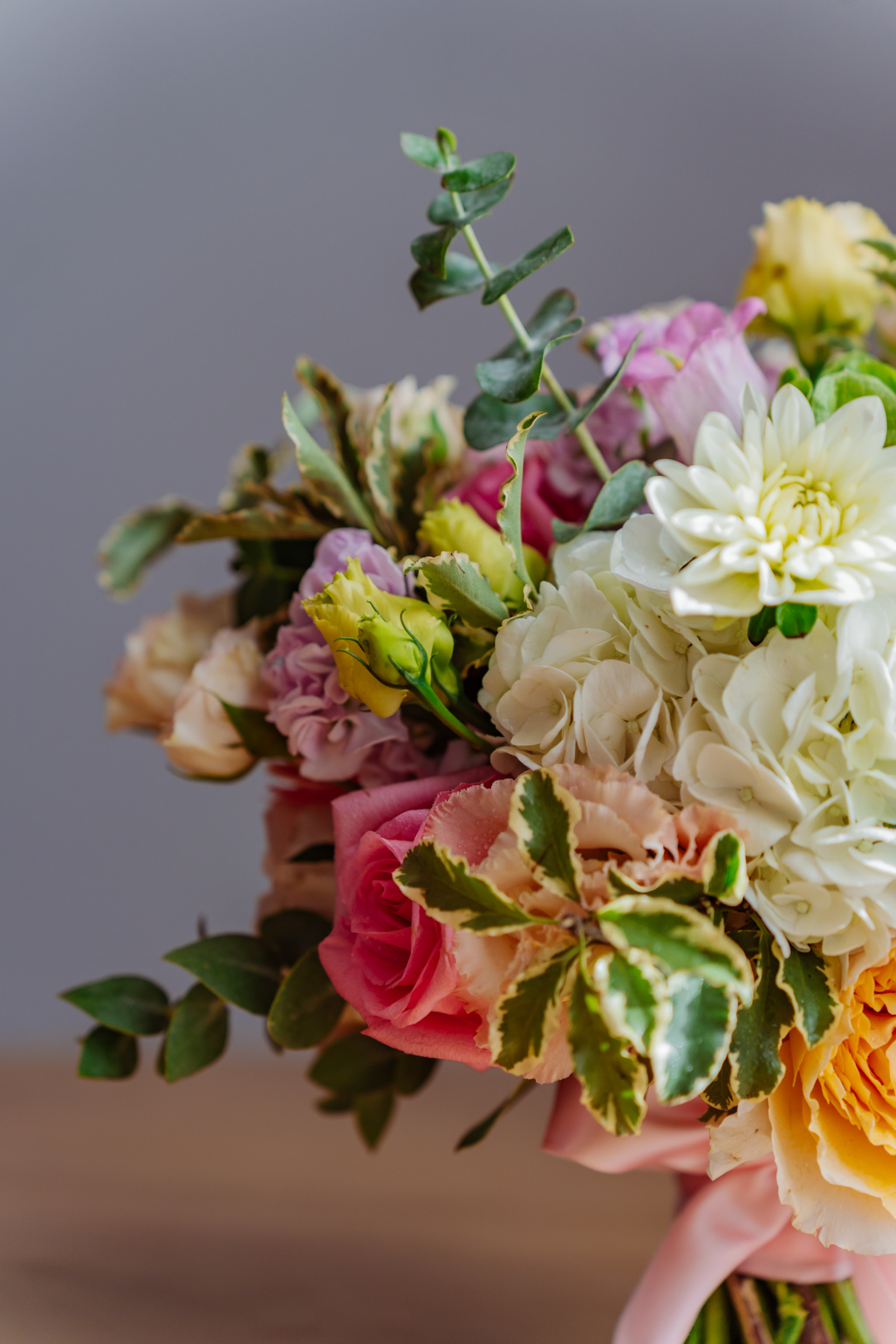 Buchetele realizate în atelierul nostru sunt prinse cu panglică decorativă din mătase, voal sau satin, asortată cromatic florilor. Alegem materialul ce se potrivește cel mai bine cu forma și stilul buchetului.