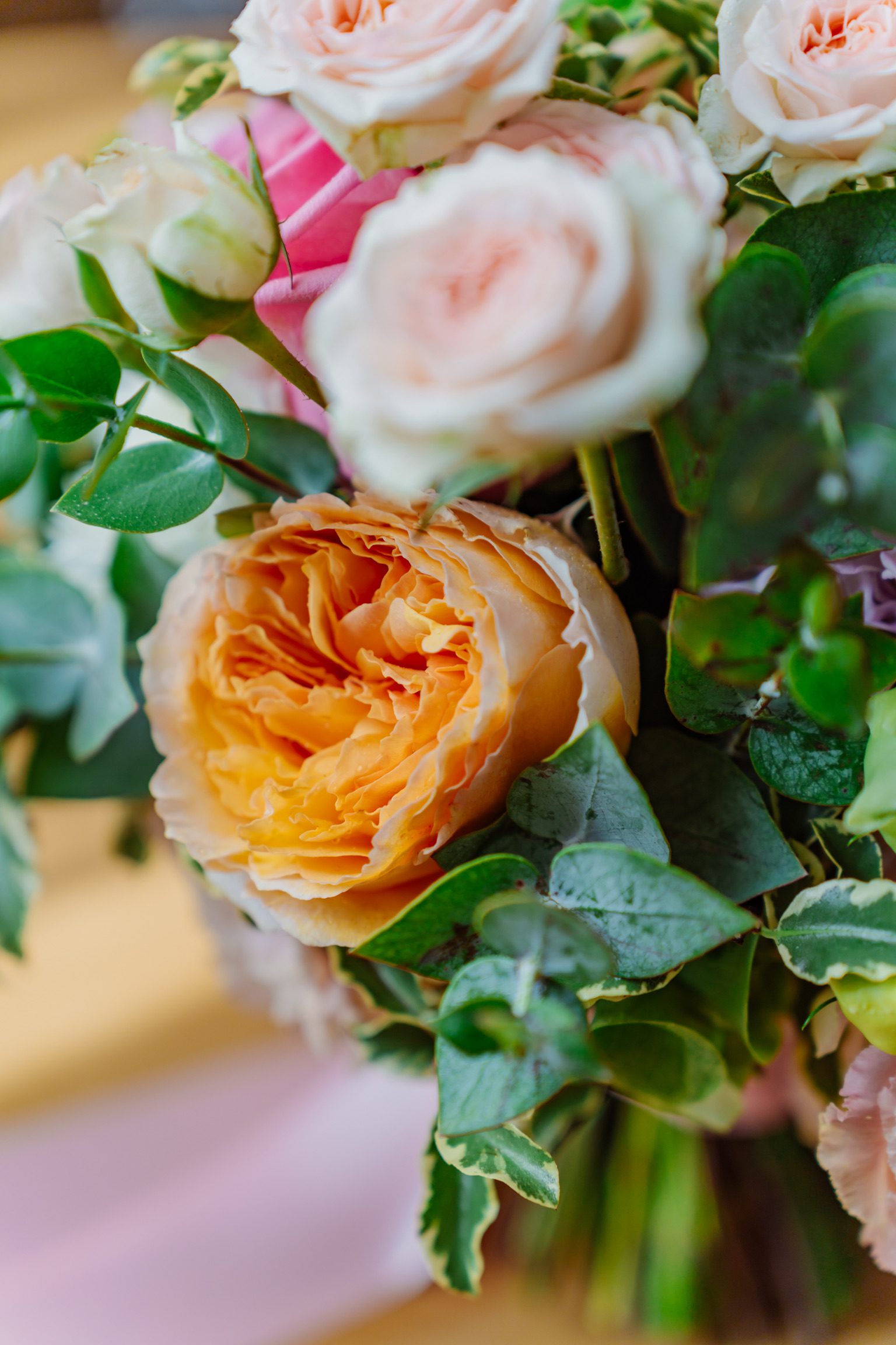Buchet floral romantic, cu hortensii și mini rose
