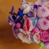 Buchet compact, cu craspedia albastră și fucsia