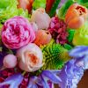 Formă buchet: gardening, nu foarte dezordonat. Volum abundent. Stil pastelat, exotic.