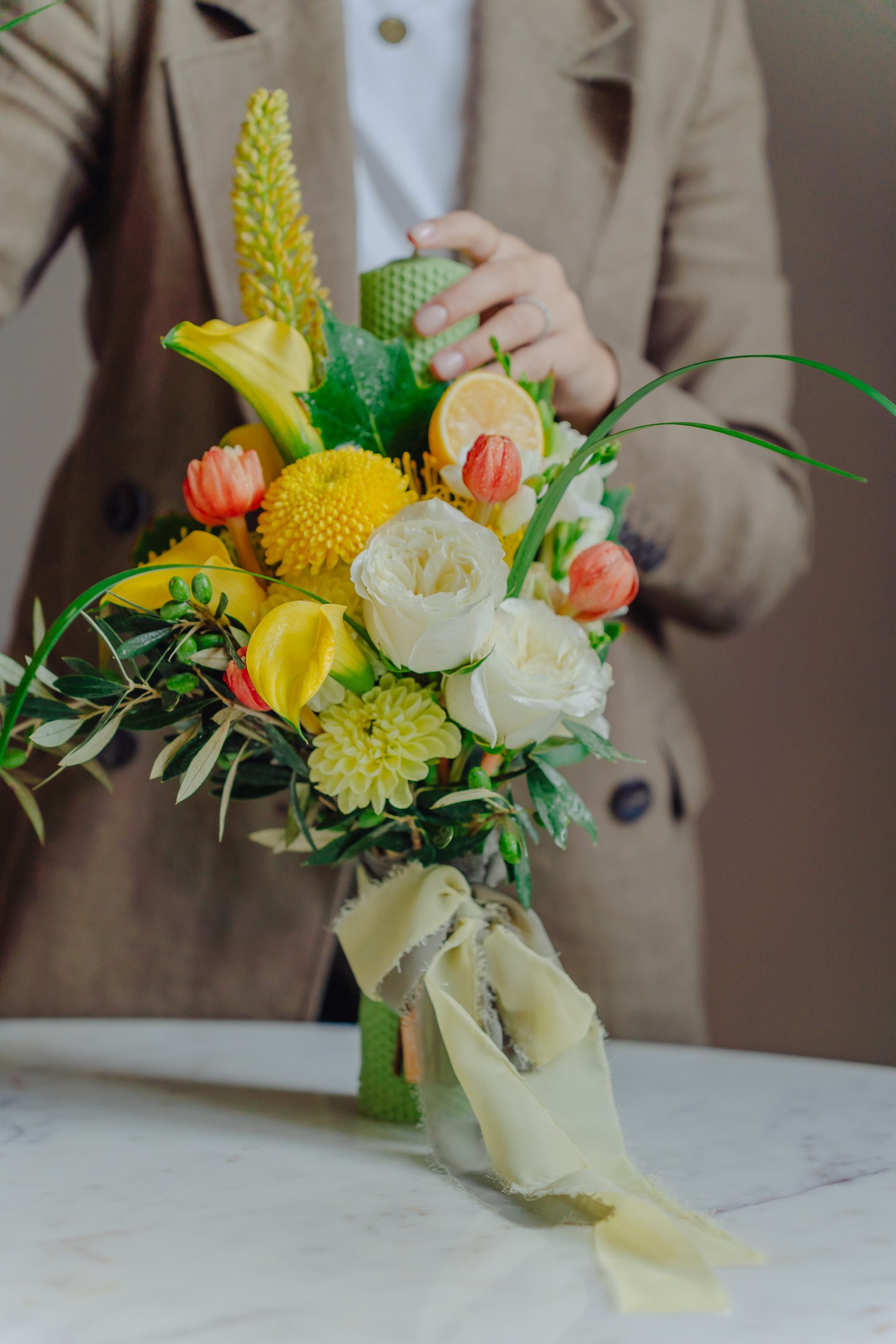 Prețul afișat nu include livrarea produselor. Recomandăm ridicarea accesoriilor florale (buchete, cocarde, brățări, lumânări pentru ceremonii etc.) de la atelierul nostru, în dimineața evenimentului. Acest aspect se va stabili odată cu plasarea comenzii.
