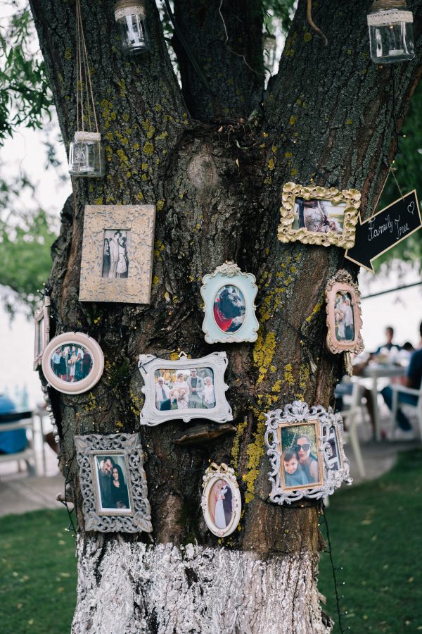 Decorul dispus pe trunchiul copacului include un număr de 20-22 de rame vintage cu fotografii ale membrilor familiei, prietenilor apropiați sau alte amintiri de care ați dori să se amintească în mod special în ziua evenimentului. Echipa noastră se ocupă de editarea, printarea și ajustarea fotografiilor în funcție de suportul ales. În ziua evenimentului, vom monta ramele pe copacul de la locație, urmând a le demonta a doua zi după eveniment.